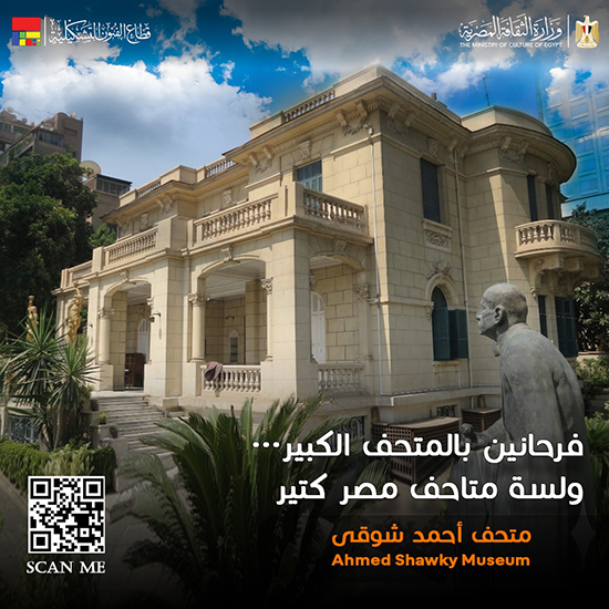وجّهت وزارة الثقافة دعوة موسعة للجمهور لزيارة متحف أحمد شوقي متحف أحمد شوقي Ahmed Shawqi Museum بالجيزة، وذلك ضمن فعاليات مبادرة `فرحانين بالمتحف الكبير… ولسه متاحف مصر كتير`، التي تهدف إلى تعزيز الوعي المتحفي وإحياء الاهتمام بالكنوز الثقافية المنتشرة في مختلف ربوع مصر، تزامنًا مع الزخم العالمي الذي يرافق افتتاح المتحف المصري الكبير.