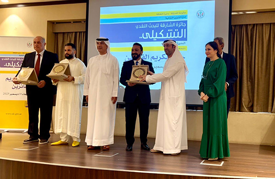 بمناسبة حصوله على جائزة الشارقة للبحث النقدي التشكيلي في دورتها الـ16 لعام 2025 عن كتابه `الذاكرة البصرية: التراث العربي في تجليات الفن التشكيلي المعاصر`، وذلك ضمن منافسة عالمية ضمت 46 مشاركة.